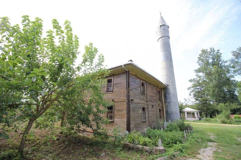 Yığma yapım sistemiyle inşa edilen yapıda malzeme olarak ahşap kullanılmıştır. Yapı köşelerden ahşap geçme tekniğiyle inşa edilmiştir. Harim, son cemaat yeri ve kadınlar mahfilinden oluşmaktadır. Son cemaat yeri üst örtüsü sundurma şeklinde düzenlenmiştir ve üst örtü malzemesi Marsilya kiremittir. Caminin minaresi kuzeydoğu köşesinde bulunmaktadır. Sonradan inşa edilen minaresi şerefesizdir. Yapının dıştan üst örtüsü dört yönde kırma çatıdır ve çatı malzemesi Alaturka kiremittir. Çatının saçak altları ahşap malzeme ile kapatılmıştır. Yapının harim girişi, kuzey cephesinde, son cemaat yerinde bulunmaktadır. Giriş kapısı çift kanatlı ahşap kapı olup dikdörtgen formludur. Kapının çevresinde bulunan ahşap silmelerde ahşap işçiliğe rastlanmaktadır. Yapının kuzey ve batı cephesinde iki, doğu ve güney cephesinde dört adet pencere bulunmaktadır. Tüm pencereler dikdörtgen formlu ve ahşaptır.