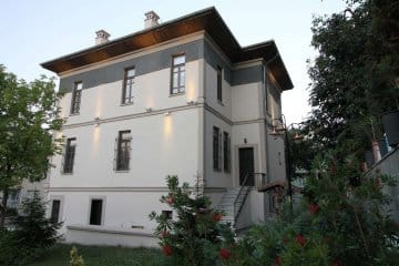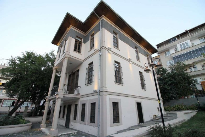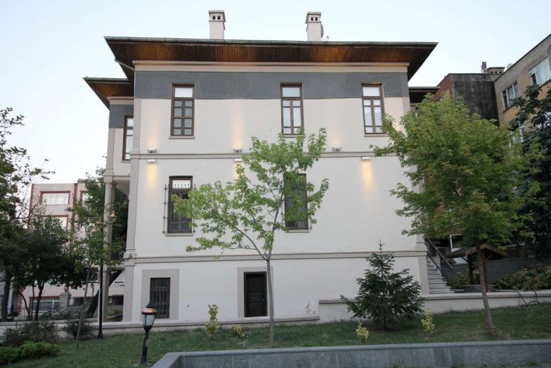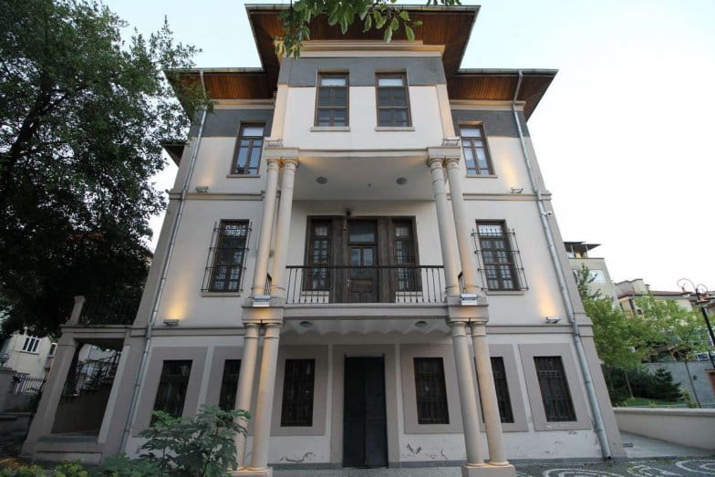 Yığma yapım sisteminde inşa edilen yapı, bir bodrum kat, zemin kat ve bir normal kattan oluşmaktadır. Kat araları ve köşeler silme ile geçilmiştir. Kırma çatısı cephelerde geniş bir saçak oluşturmuştur. Saçak altı ahşap malzeme ile kaplanmıştır. Doğu cephesinde yer alan çift kanatlı ahşap kapı ile zemin kata giriş yapılmaktadır. Giriş kapısına, iki ayrı koldan, yarım döner merdiven ile ulaşılmaktadır. Merdivenler demir korkulukludur. Giriş hattı üzerinde dışa taşkın cumbası bulunmaktadır. Cumba, köşelerden ikişer adet taş sütun ile desteklenmiştir. Cumba, önde iki, yanlarda birer pencereye sahiptir. Kuzey cephede birinci katta dışa taşkın biçimde bulunan cumba köşelerinden ikişer adet sütun ile taşınmaktadır. İki katta tekrar eden sütunlar, zemin katta bulunan cumbayla aynı ölçüye sahip balkonu da taşımaktadır. Balkon demir korkulukludur. Balkon altından çift kanatlı ahşap kapı ile bodrum kata girilmektedir. Bodrum katta bulunan kapı ve pencereler kesme taş ile çevrelenmiştir. Pencereler ahşap malzemelidir ve giyotin tiptir. Zemin kat ve bodrum katta yer alan pencereler demir korkulukludur.