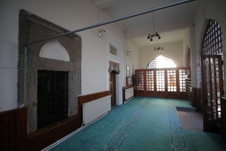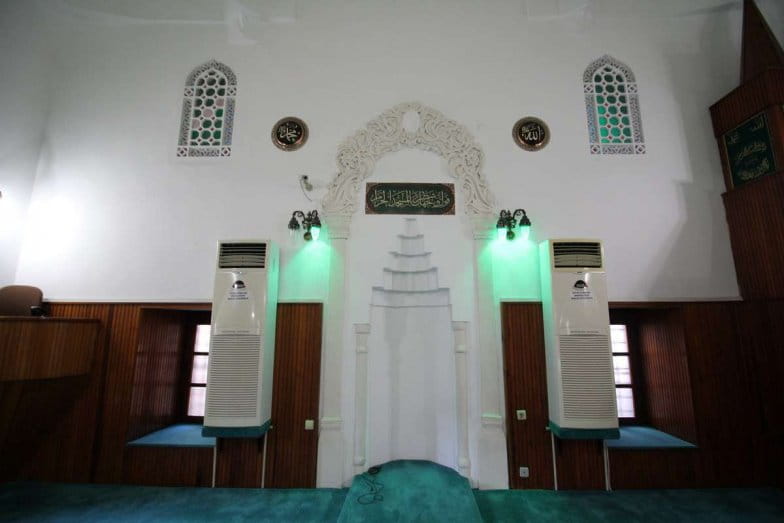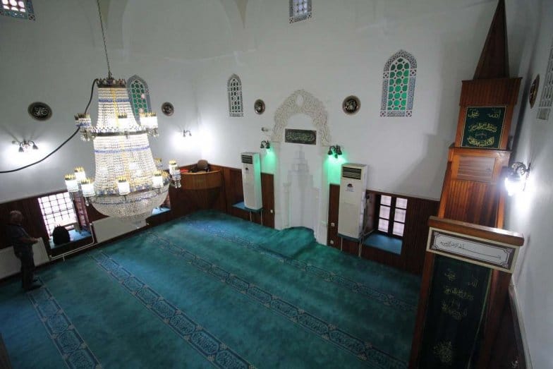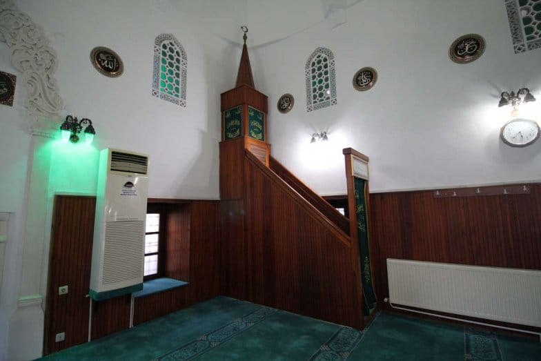 Mihrap, mukarnaslı olup yoğun işçiliğe sahip çerçevesi bulunmaktadır. Minber ve vaaz kürsüsü ahşap malzemeden yapılmış olup özgün değildir. İç mekân duvarları bir bölüme kadar ahşap malzemeyle kaplanmış olup diğer bölümleri beyaz boyalıdır.