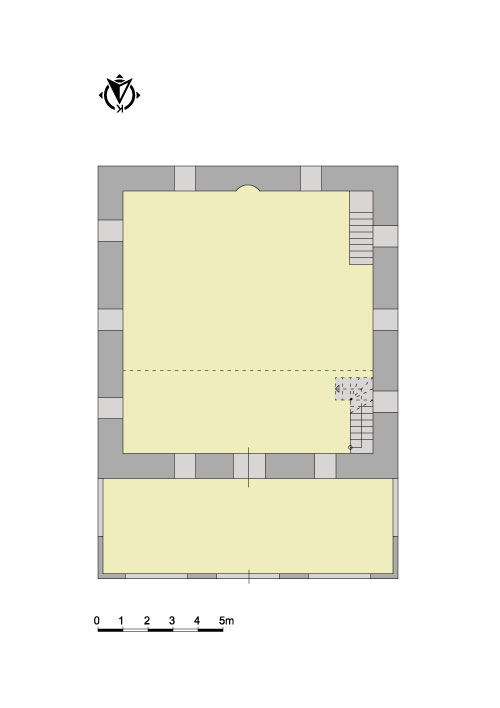 Yapının içten üst örtüsü ortada kubbedir. Kubbeden beden duvarlarına geçiş elemanı olarak pandantif kullanılmıştır. Pandantifler birbirine sivri kemerlerle bağlanmaktadır.