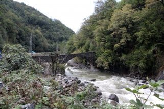 Kâgir olarak inşa edilen köprü üç mesnetli kemer köprüdür. İki kemerli köprüde malzeme olarak moloz taş, kaba yonu taş ve kesme taş kullanılmıştır. Geniş bir açıklığı geçen köprünün konstrüksiyonu sağlam durumdadır. Köprü, Borçka-Hopa karayolu kenarında yer almaktadır.