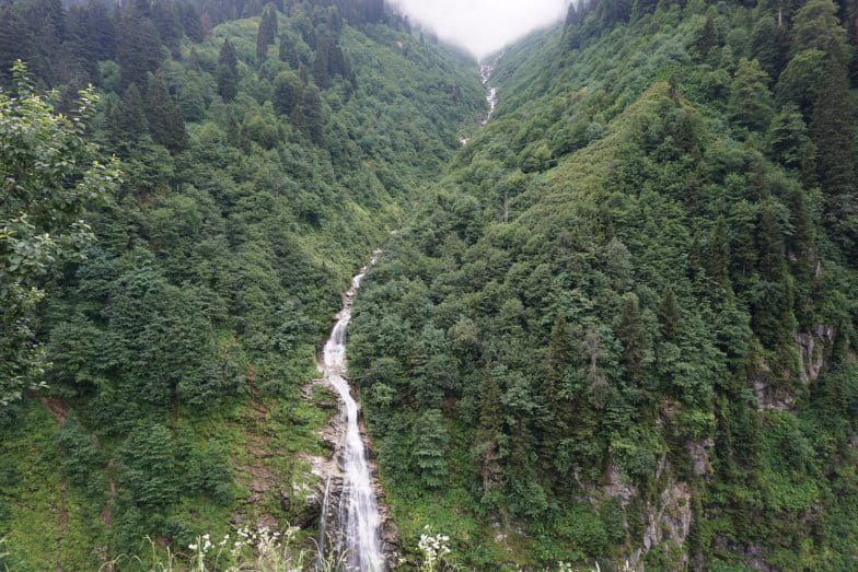 Çamlıhemşin ilçesinde bulunan Ayder yaylası merkezinin karşı kısmında yer alan şelale yaylanın merkezinden net bir şekilde görülmektedir. Yaylanın görünümüne estetik bir değer kazandıran şelale buraya gelen insanları ihtişamlı görüntüsüyle karşılamaktadır. Yemyeşil ladin ağaçları arasından süzülüp gelen bu şelale fotoğraf meraklılarının da ilgi odağı halindedir. Ancak şelaleye yol olmadığı için karşı yamaçtan fotoğraf çeken insanlar düşme tehlikesi ile karşı karşıya kalmaktadır. Bu yüzden fotoğraf çekilmek için kullanılan alana teras yapılmalıdır. Yol olmadığı için şelale insan etkileşiminden uzaktır.