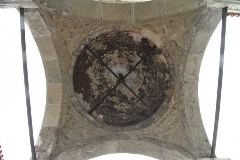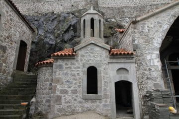 İlk avlunun batısında yer alan çan kulesi dört sütun üzerine yerleştirilmiştir. Yapı içerisinde bulunan kilise tek nefli ve tek apsislidir. Doğu yönündeki üst örtünün ortasında fener bulunmaktadır. Fener bölümünde pencere açıklıkları bulunmaktadır. Yapı içerisinde günümüze ulaşmış yoğun freskler bulunmaktadır. Narteksi bulunmaktadır. Kilisenin içerisinde III. Alexios’un karısı Theodora ve annesi Eirene’nin freskleri bulunmaktadır. İkinci avluda bulunan şapel, tek nefli ve tek apsislidir. Batı cephesinde bulunan girişi dikdörtgen formludur. Üst örtüsü günümüze ulaşmamıştır. Güneybatı yönünde bulunan mezar, 1879’da ölen Metropolit Costantios’a aittir. Orijinalinde kaide üzerinde yükselen dört sütunun yuvarlak kemerler oluşturduğu kırma çatılı yapıdan günümüze sadece kaidesi ve sütun ayakları ulaşmıştır.