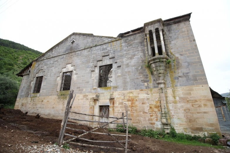Yığma yapım sistemiyle inşa edilen yapıda kesme taş malzeme kullanılmıştır. Kilise, batı girişinin üst kısmında bulunan kitabesine göre, 1874 yılında Aziz Georgios’a ithafen inşa edilmiştir. Diğer bir kitabesinde de 1875 yılında kiliseye bağışta bulunulduğu yazılı kaynaklarda belirtilmektedir.