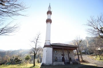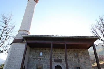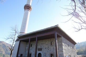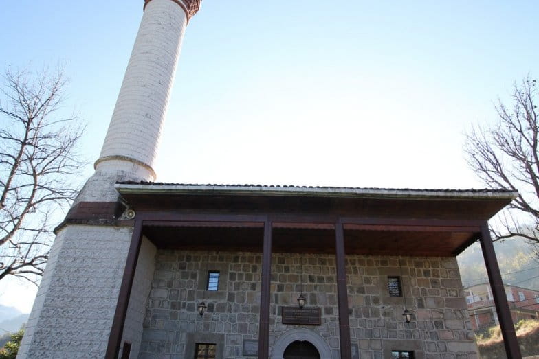 Yığma yapım sistemiyle inşa edilen yapıda malzeme olarak kesme taş ve moloz taş kullanılmıştır. Kare planlı olan yapı, zemin kat ve bir normal kattan oluşmaktadır. Yapının kuzey yönünden tek girişi bulunmaktadır. Girişin sağ ve sol tarafında Osmanlıca yazılar bulunmaktadır. Girişi sağlayan ahşap kapısı düzgün kesme taş sövelidir. Kapı üzerinde bitkisel motifli süslemeler görülmektedir. Cami, kitabesine göre, Abaşinzade Ali Usta (bazı kaynaklarda Yaşinzade Ali Usta olarak geçmektedir), Refiki Murtazaoğlu Mustafa ve Kurdoğlu Osman Usta tarafından yapılmıştır. Cami Hicri 1216 (Miladi 1801) yılında yapılmıştır.