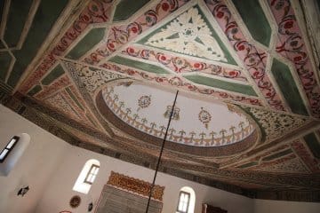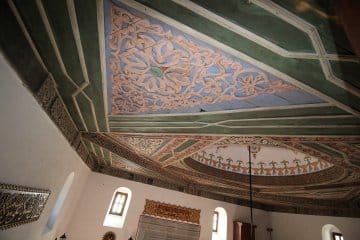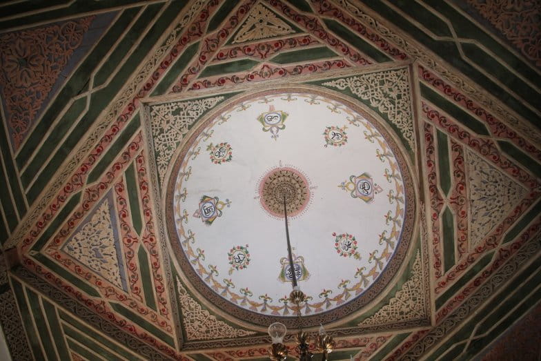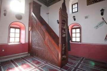 Kadınlar mahfiline ana harimin doğusunda bulunan merdiven ile çıkılmaktadır. Kadınlar mahfili dört adet ahşap sütun ile taşınmaktadır. Kadınlar mahfili korkulukları, köşk kısmı ve sütunlar bitkisel motiflerle bezenmiştir. Harimin ortasında bulunan kubbenin içi kalem işleriyle süslenmiştir. Kubbe etrafı ahşap işçilikli ve boyalıdır. Sade mihrap kesme taş malzemeden yapılmıştır. Minber ise ahşap malzemeden yapılmıştır. Yoğun ahşap işçiliği olan minber bitkisel motiflerle süslenmiştir.