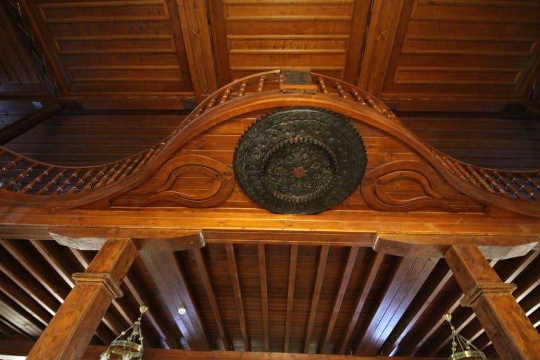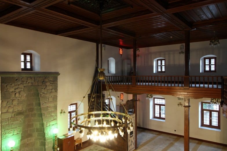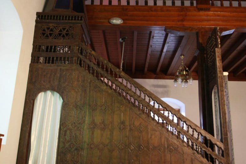 U planlı kadınlar mahfili, ahşap sütunlarla taşınmaktadır. Kadınlar mahfili orta kısmında yarım daire şeklinde köşk kısmı yer alır. Kadınlar mahfili katına ana mekânda yer alan ahşap merdivenler ile çıkılmaktadır. Taş malzeme ile yapılan mihrabı kademeli nişlidir. Ahşap minberinde sade süsleme görülmektedir. Ahşap tavanında kare formlu tavan göbeği yer almaktadır. Göbek, geometrik ve bitkisel motiflerle süslenmiştir. Kadınlar mahfilinin köşk kısmının alt kısmında yer alan göbekte de dairesel, geometrik ve bitkisel motiflere yer verilmiştir.